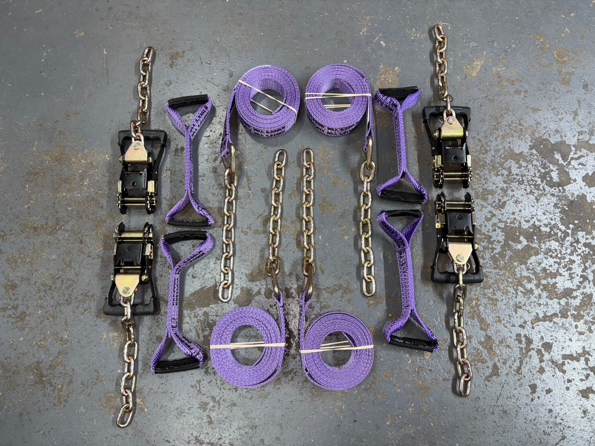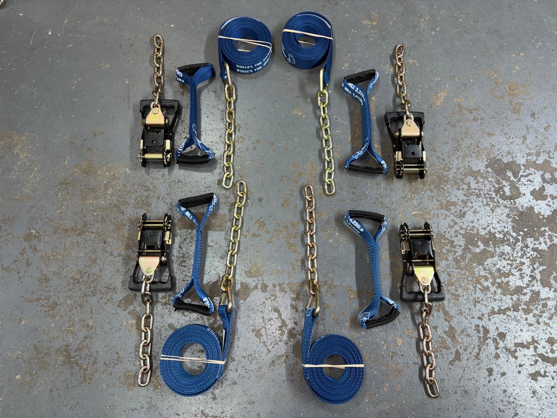 Four (4) 2" x 16' Straps with 5/16" x 12" G70 Chain Tails